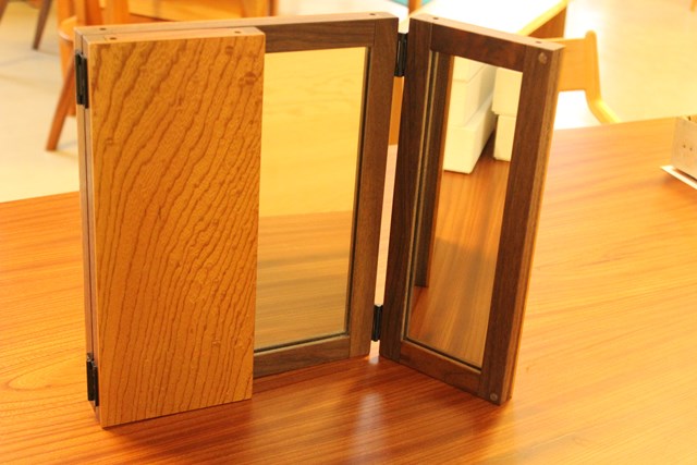 こちらは 兵庫県N様へ納品させていただく けやきの3面鏡です。洗面台へお取付いただきます。