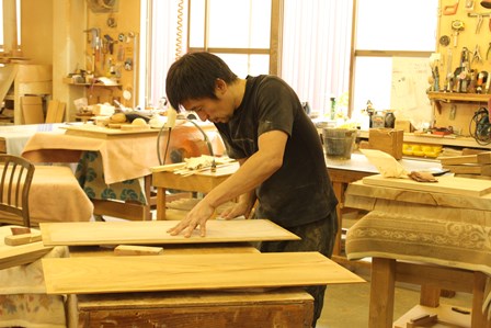 特に材の質にはこだわっています。「けやき」で注文を承った作品は 裏板まで 無垢のケヤキで製作します。