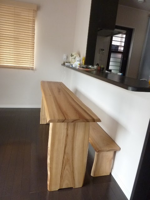 同じお部屋にカウンターがあり、そちらのベンチを 同じ無垢の楠で製作させていただき