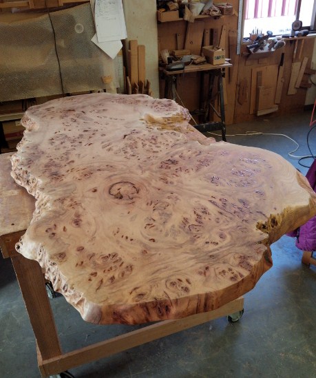 今はちょっと形の面白いけやきの天板を作ってます。
