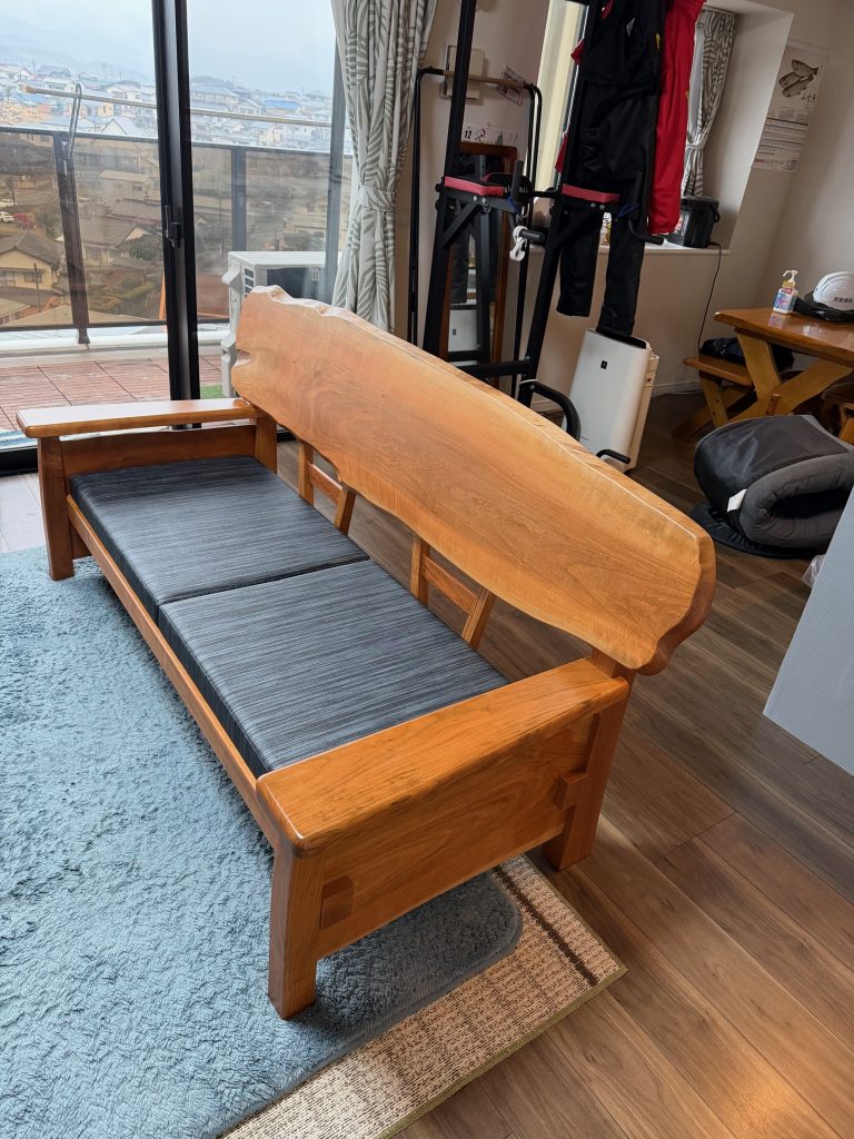 2026年3月8日 / 最終更新日時 : 2026年3月8日 一枚板家具工房 鳳山堂 未分類 桜一枚板ソファ納品しました ソファが嬉しくて みんな早くお家に帰ってきます と奥様 嬉しいお言葉に 心がほっこり和みます 春にぴったりの桜一枚板ソファ 岡垣町 K様のお宅へお届けしました 最初の出会いは楠一枚板 つづくご縁に感謝を込めて